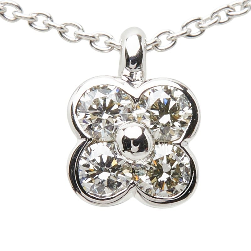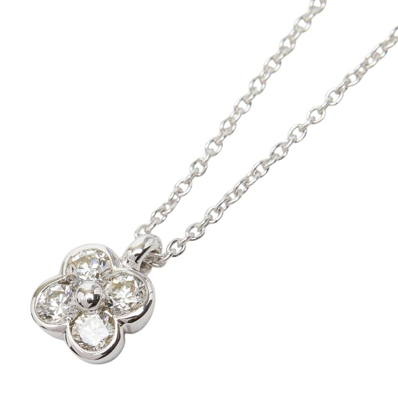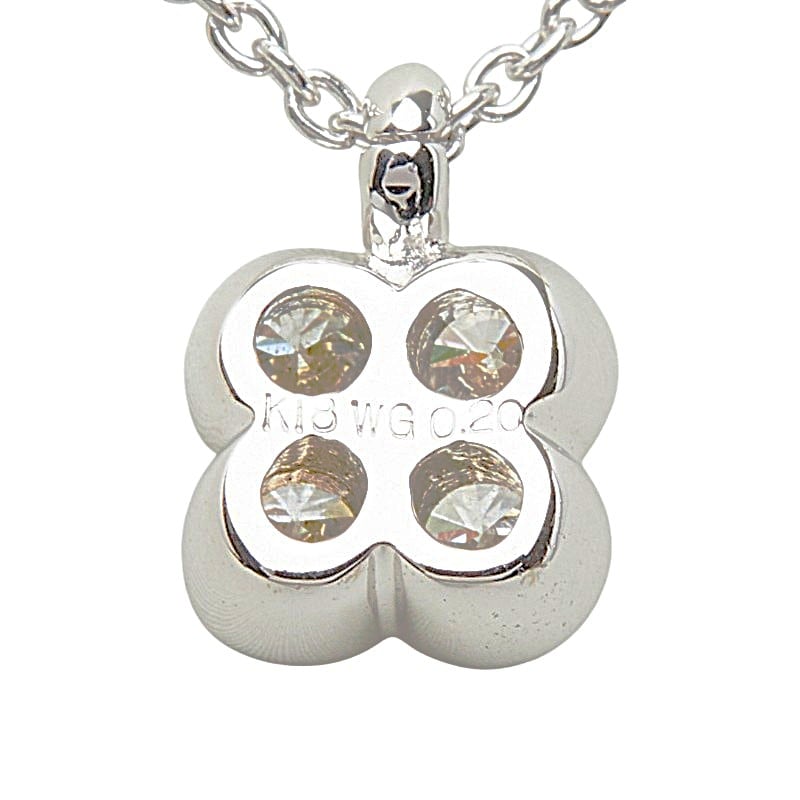 K18WG ホワイトゴールド ダイヤ0.20ct クローバーモチーフ ペンダント ネックレス レディース 【中古】