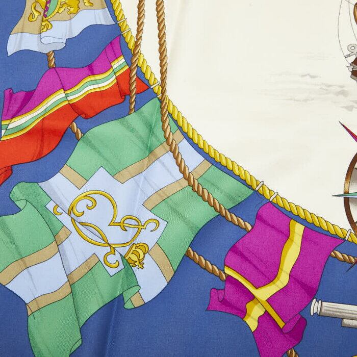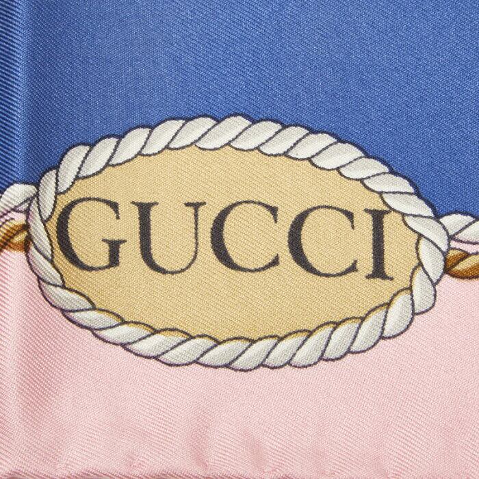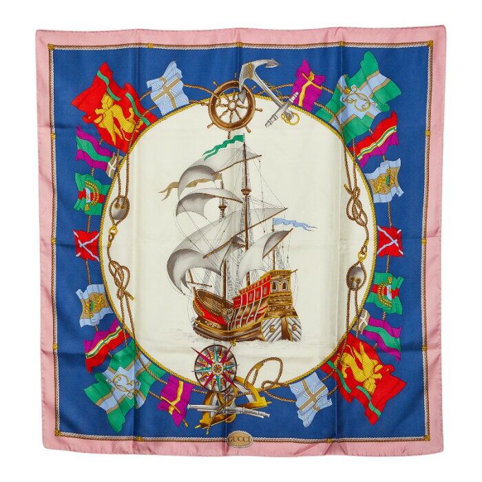グッチ Nautical flag 航海旗 セイルボート プリント スカーフ ピンク ブルー マルチカラー シルク レディース GUCCI 【中古】