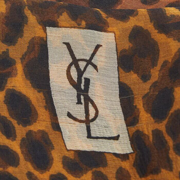 サンローラン YSLロゴ ヒョウ スカーフ ブラウン ブラック シルク レディース SAINT LAURENT 【中古】