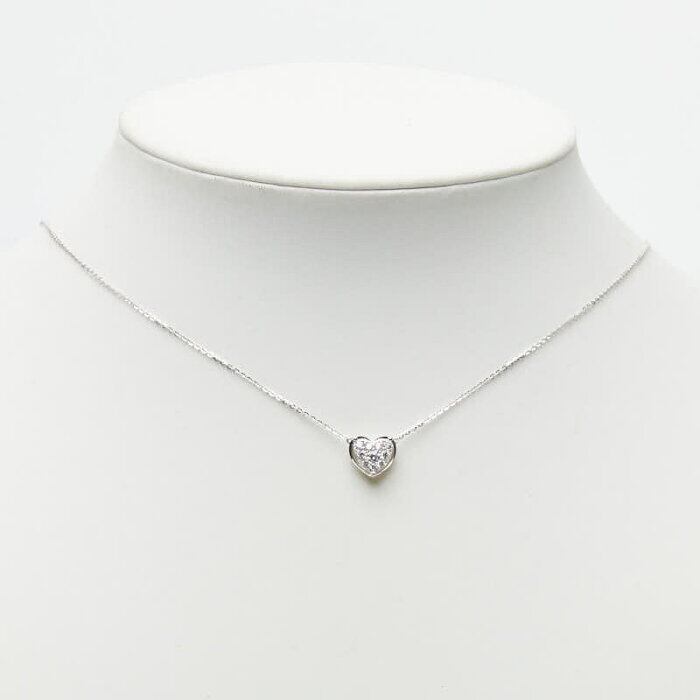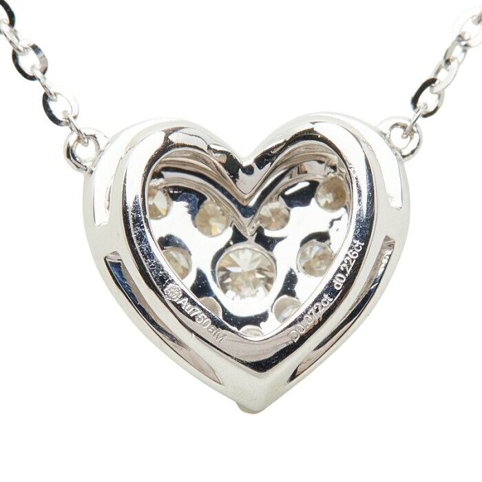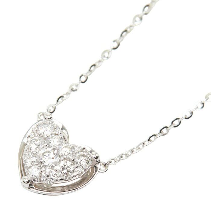 K18WG ホワイトゴールド ダイヤ0.072ct ダイヤ0.226ct aM アム ハートモチーフ ペンダント ネックレス レディース 【中古】