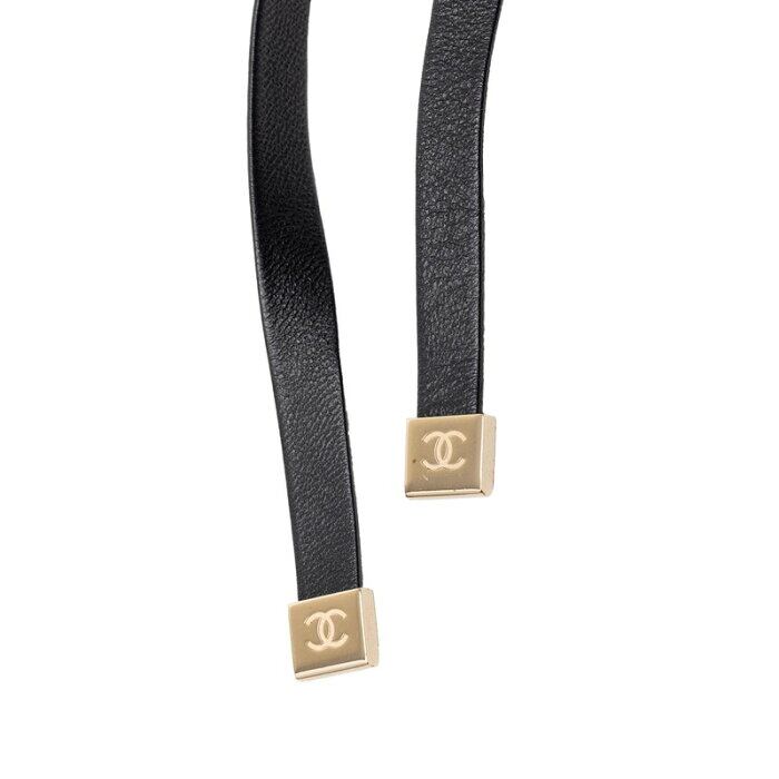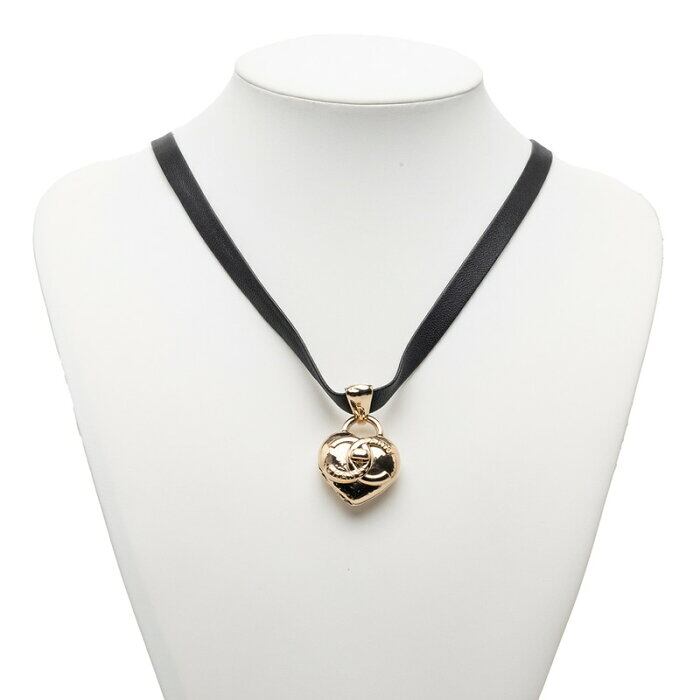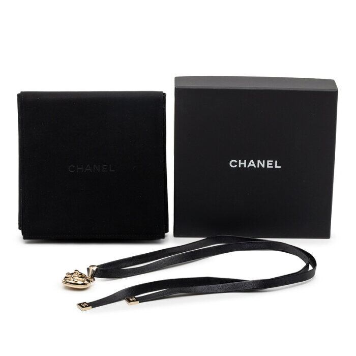 シャネル ハートロケット ターンロック モチーフ ネックレス ゴールド ブラック メッキ レザー レディース CHANEL 【中古】