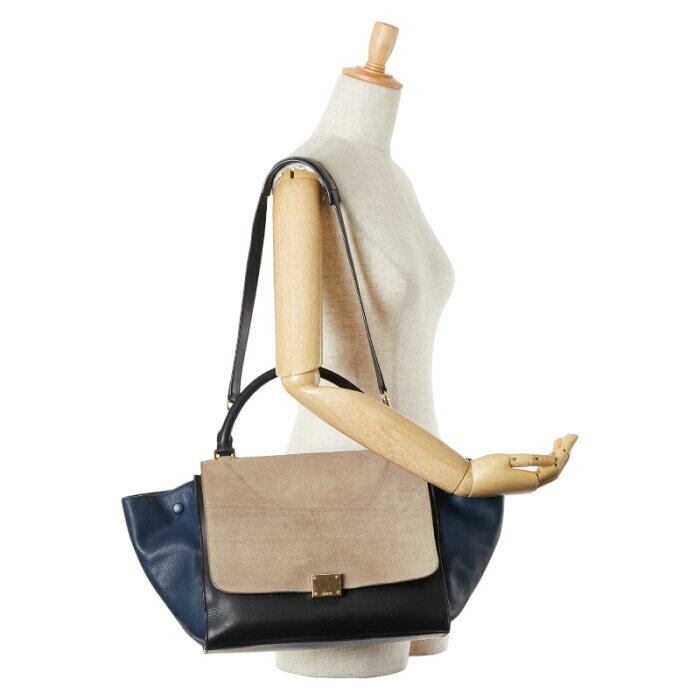セリーヌ トラペーズ ミディアム ハンドバッグ ショルダーバッグ 2WAY ブラック グレー ネイビー レザー スウェード レディース CELINE 【中古】