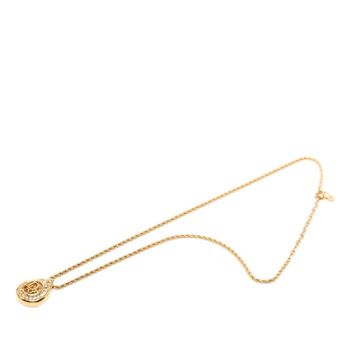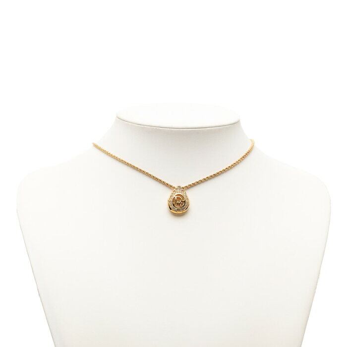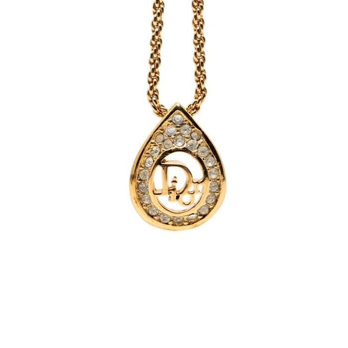 ディオール ティアドロップ ロゴ ネックレス ゴールド メッキ ラインストーン レディース Dior 【中古】
