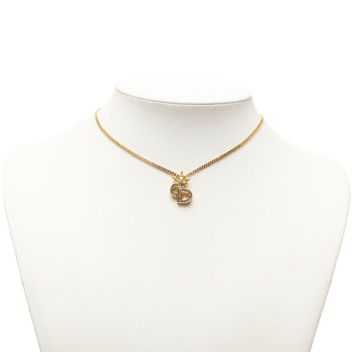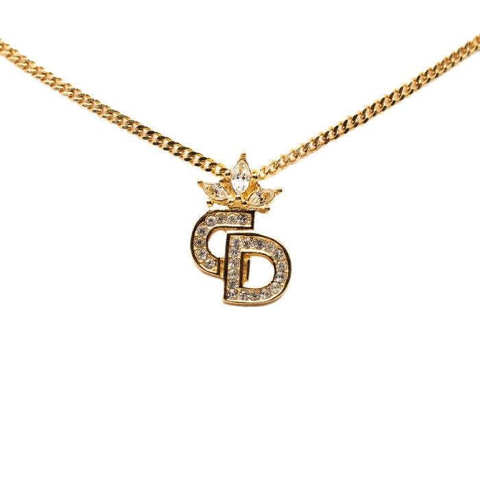 ディオール CDロゴ クラウン 王冠 ネックレス ゴールド メッキ ラインストーン レディース Dior 【中古】