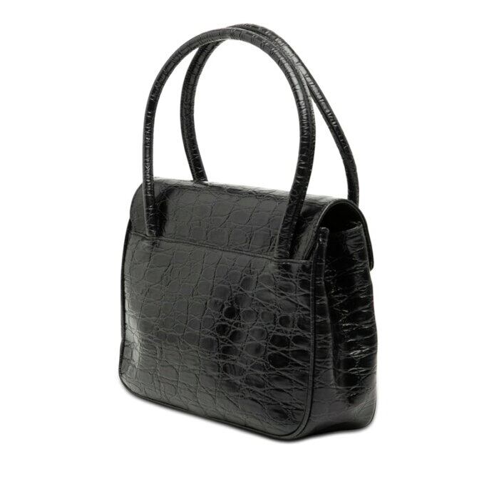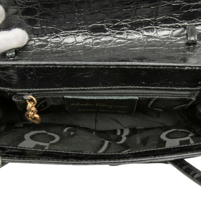 サルヴァトーレフェラガモ ヴァラ クロコ 型押し ハンドバッグ ブラック レザー レディース Salvatore Ferragamo 【中古】
