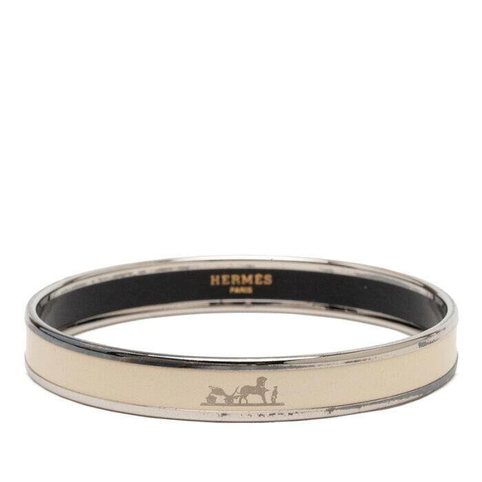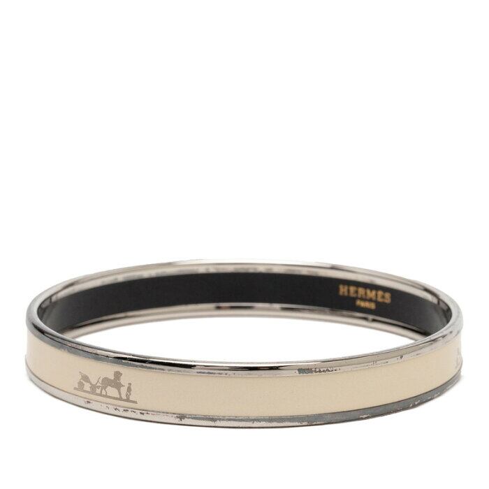 エルメス エマイユPM バングル シルバー アイボリー メタル エナメル レディース HERMES 【中古】