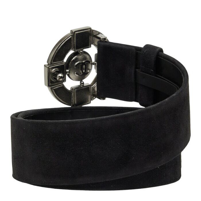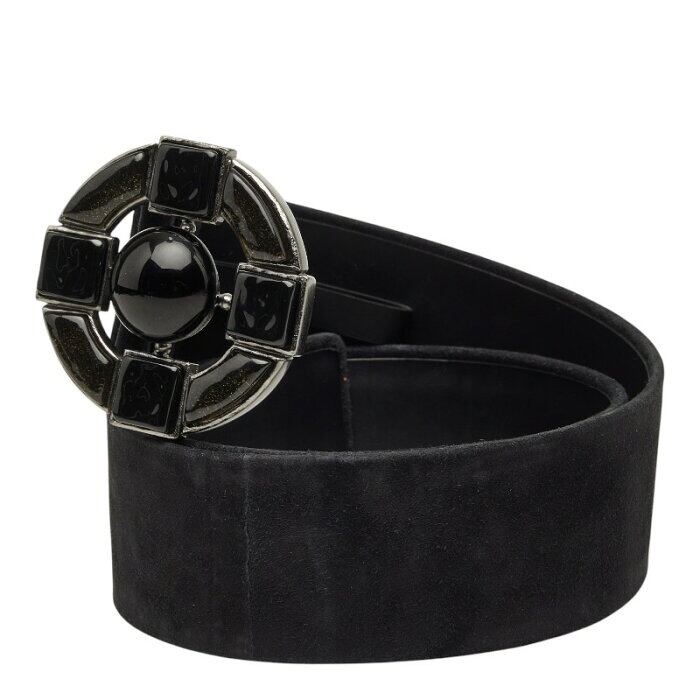 シャネル ベルト サイズ 80 32 ブラック スウェード カラーストーン レディース CHANEL 【中古】