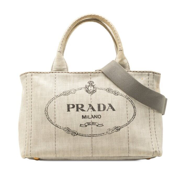 プラダ カナパ ミニ 三角ロゴプレート ハンドバッグ ショルダーバッグ 2WAY 1BG439 グレー キャンバス レディース PRADA 【中古】