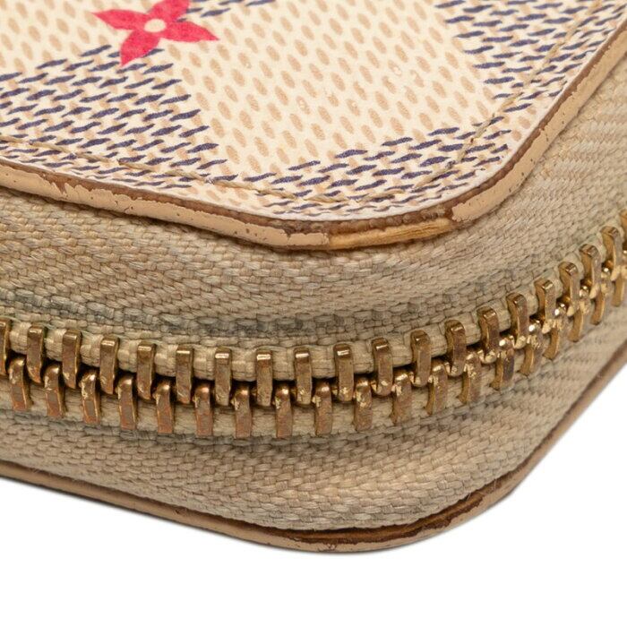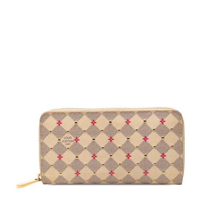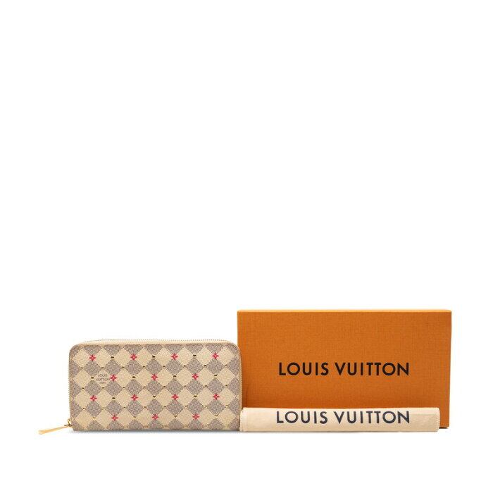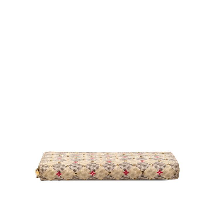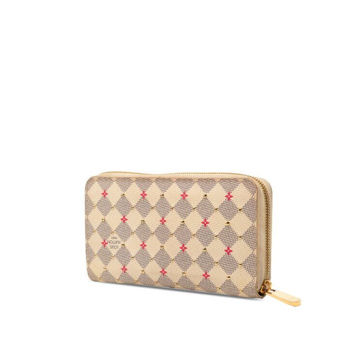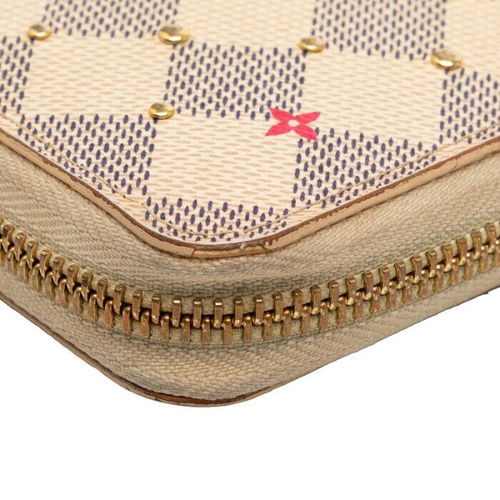 ルイ ヴィトン ダミエ アズール ジッピーウォレット スタッズ 長財布 ラウンドファスナー N64615 ホワイト ピンク PVC レディース LOUIS VUITTON 【中古】