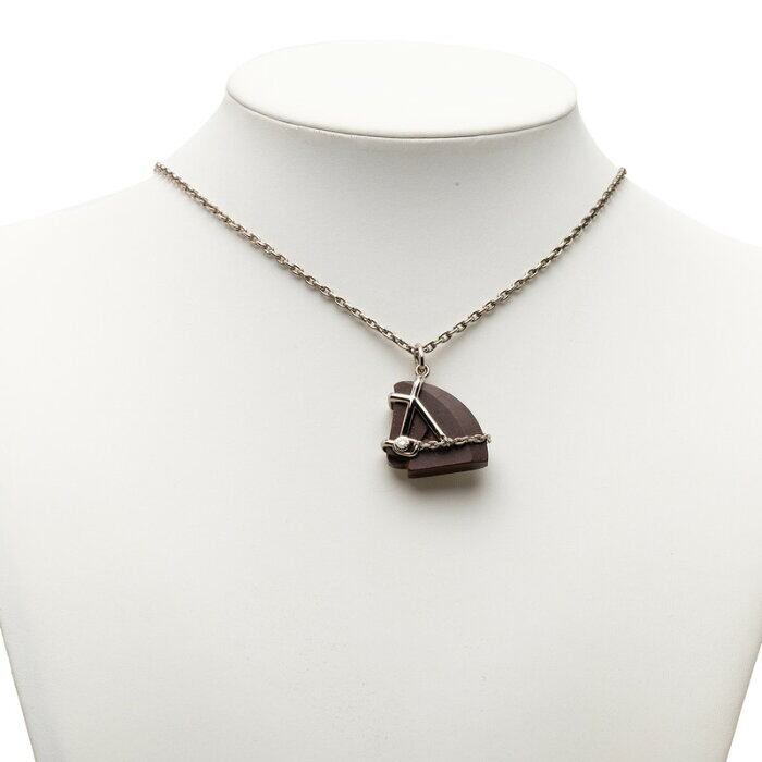 エルメス シュバル ホースモチーフ ペンダント ネックレス シルバー ブラウン メタル ヴェルカニウム レディース HERMES 【中古】