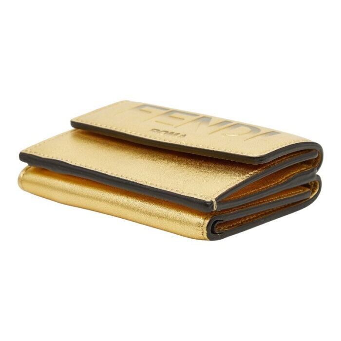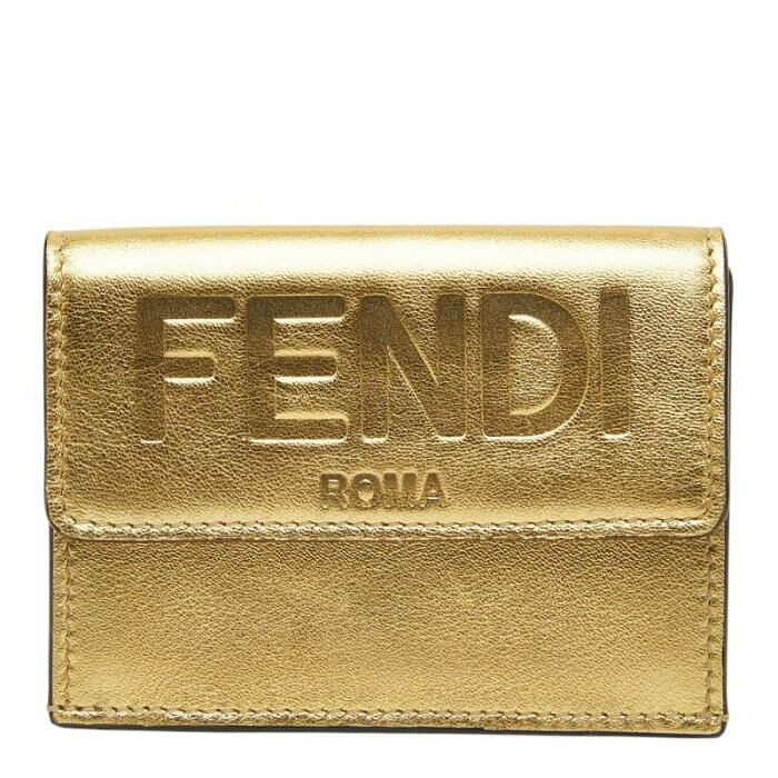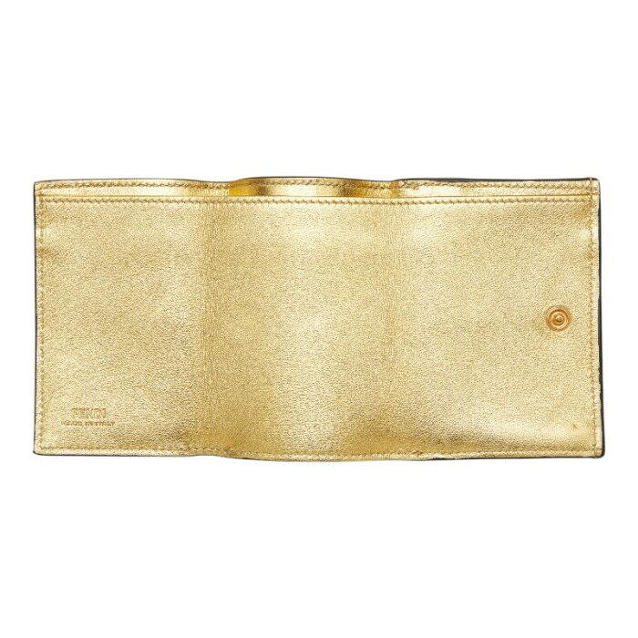フェンディ 三つ折り財布 コンパクトウォレット ゴールド レザー レディース FENDI 【中古】