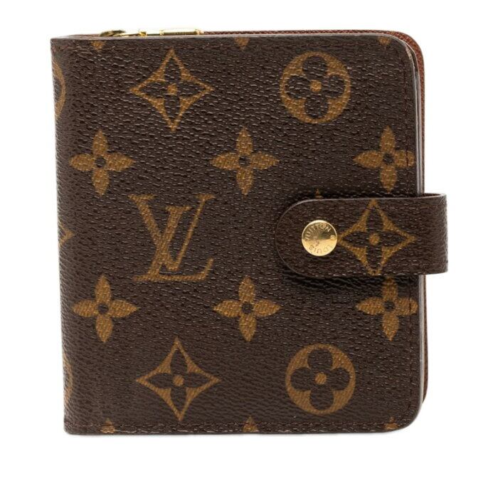 ルイ ヴィトン モノグラム コンパクトジップ 二つ折り財布 M61667 ブラウン PVC レザー レディース LOUIS VUITTON 【中古】