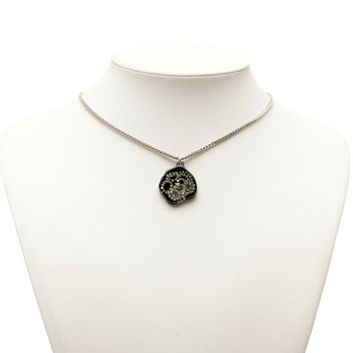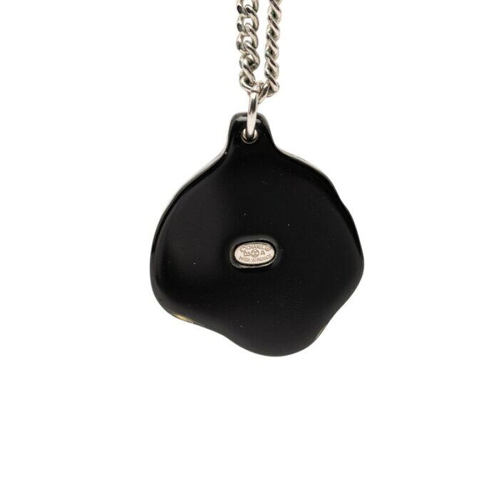 シャネル ココマーク ラインストーン カメリア ネックレス ブラック シルバー プラスチック メタル レディース CHANEL 【中古】