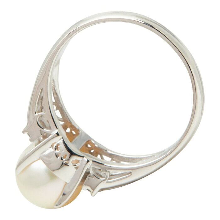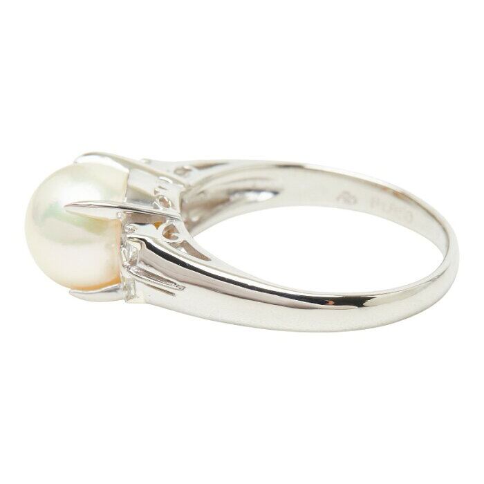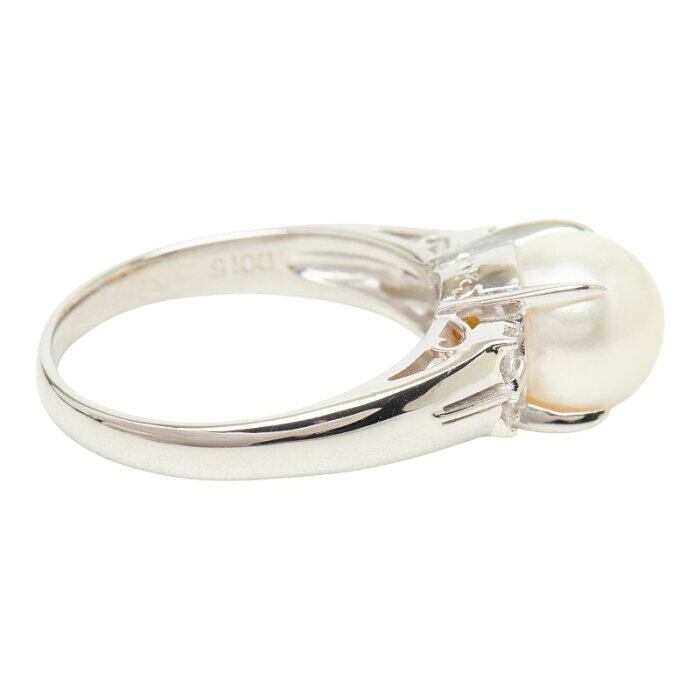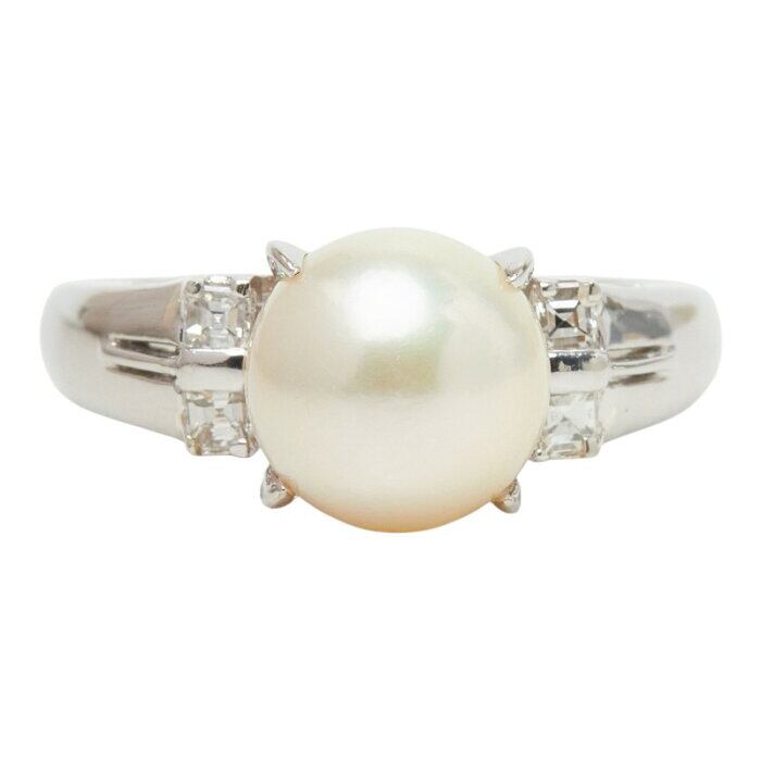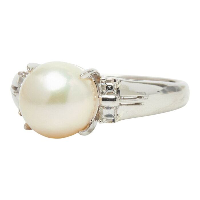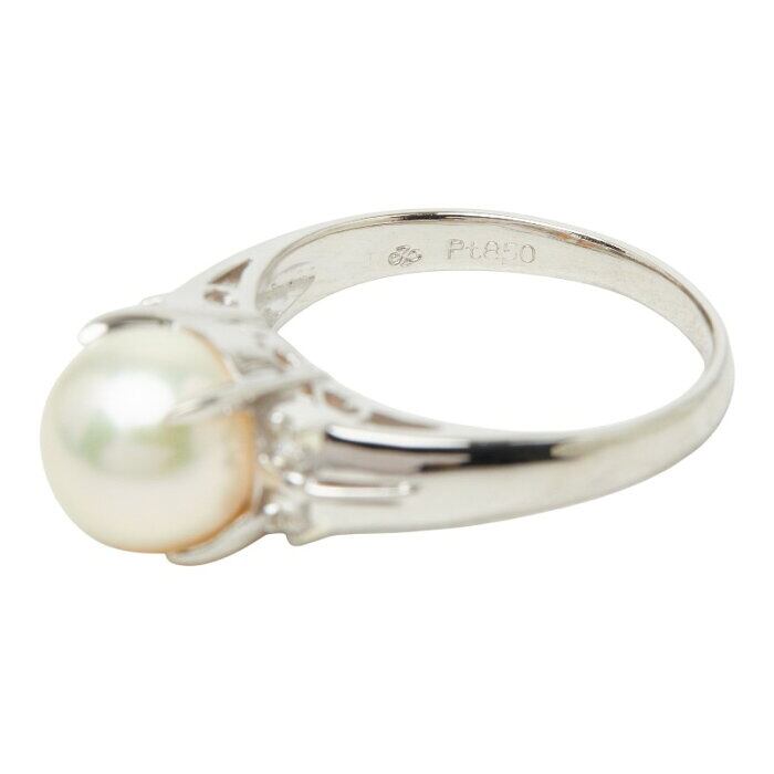 真珠 Pt850 プラチナ アコヤパール8.5mm ダイヤ0.15ct リング 指輪 レディース 14号 【中古】