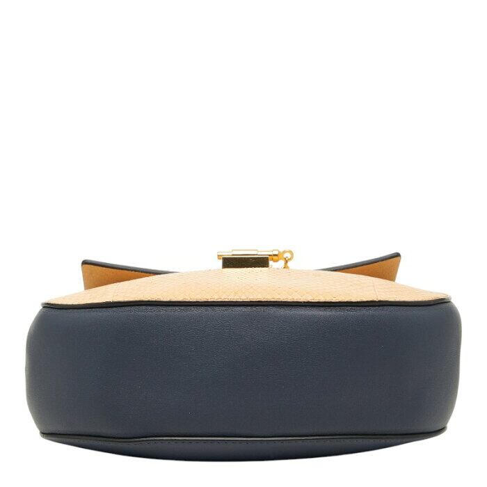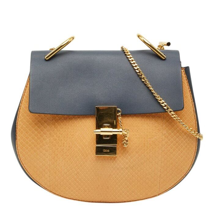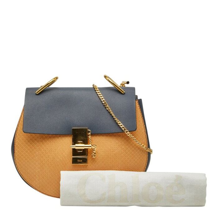 クロエ ドリュー パイソン チェーン ショルダーバッグ ネイビー ベージュ レザー レディース Chloe 【中古】