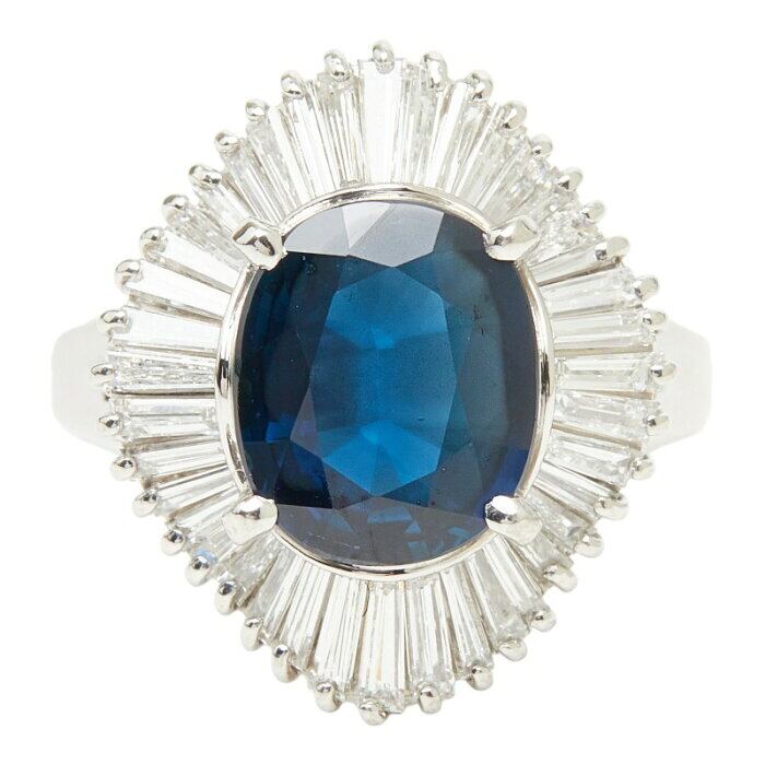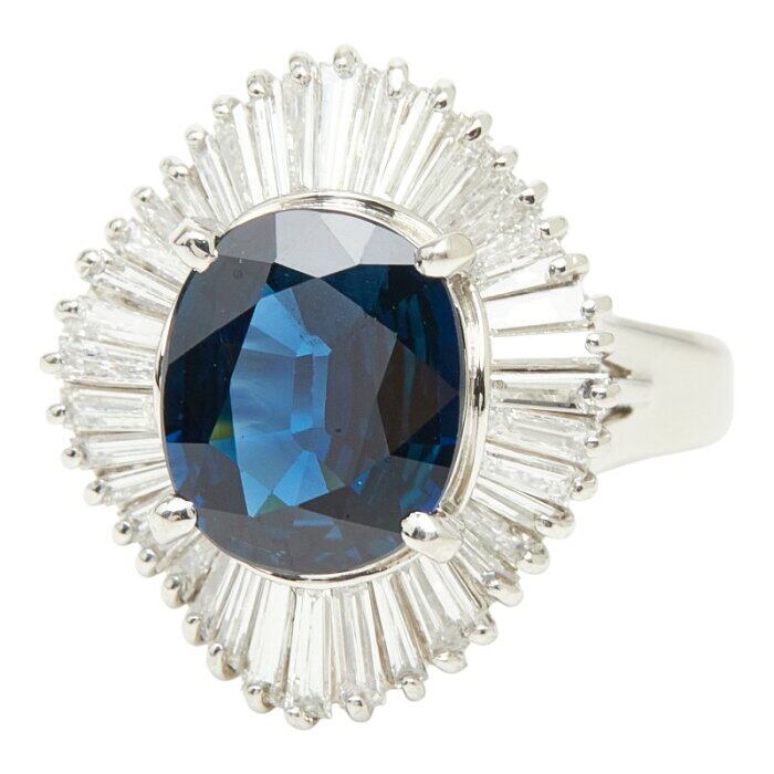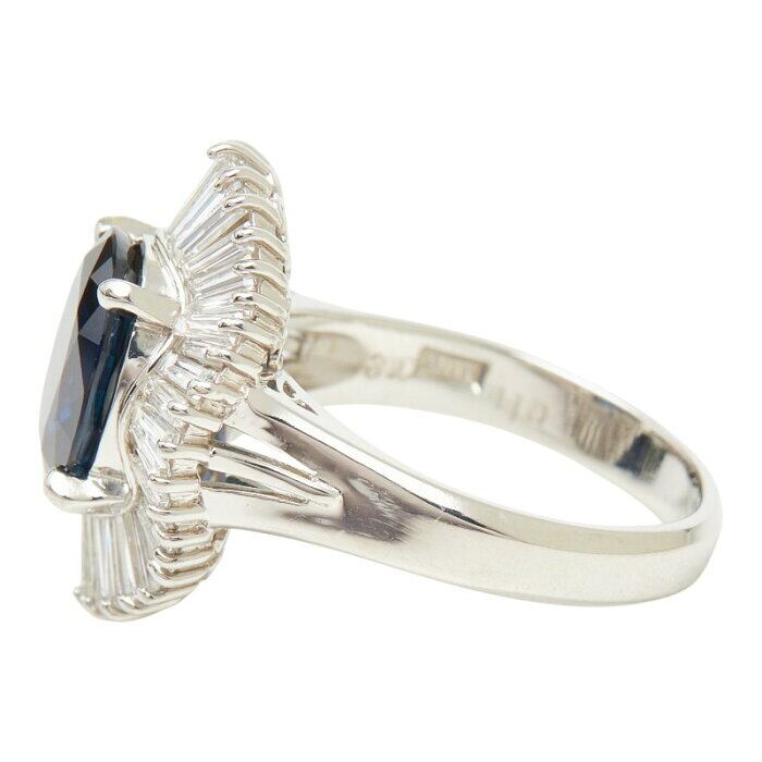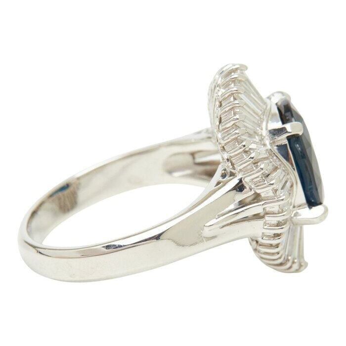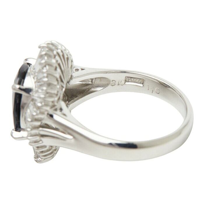 Pt900 プラチナ サファイア3.10ct ダイヤ1.10ct フラワーモチーフ リング 指輪 レディース 11.5号 【中古】