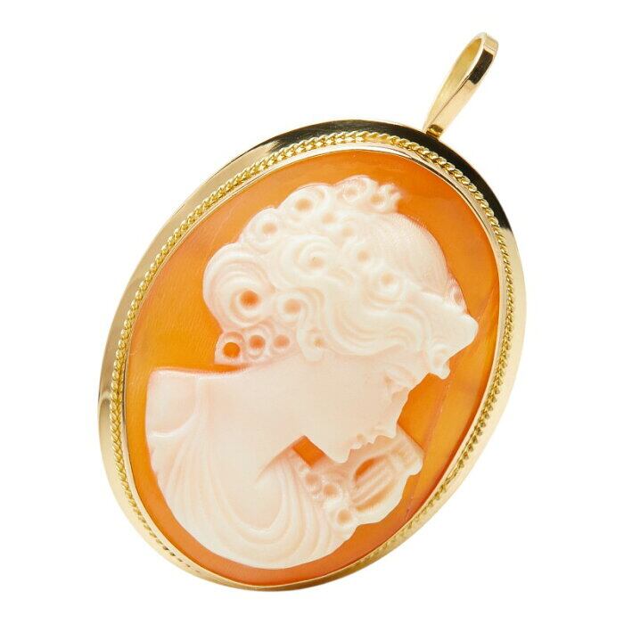 ホワイトシェル K18YG イエローゴールド カメオ23.5×17.5mm ブローチ ペンダントトップ ネックレス レディース 【中古】