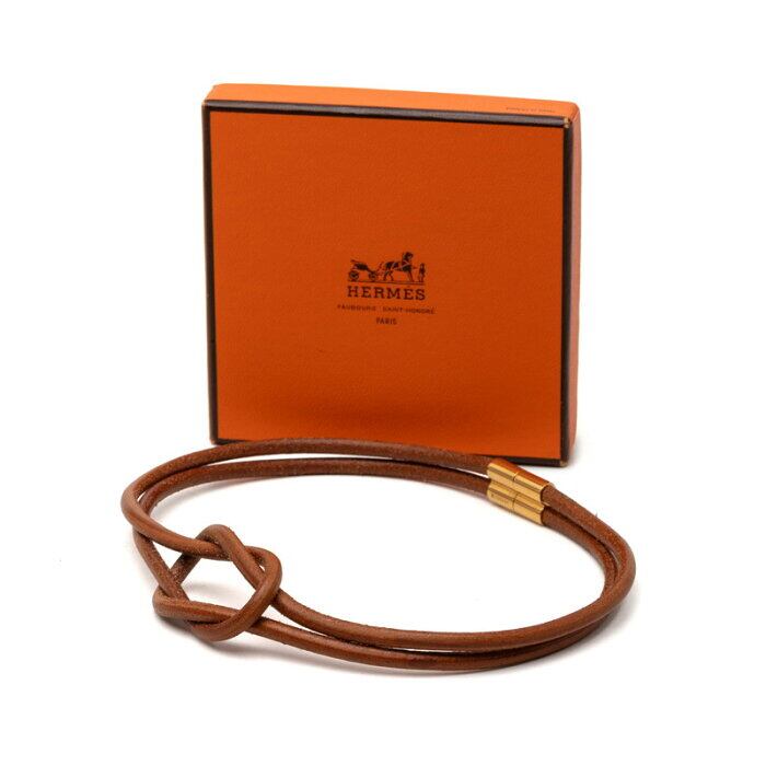 エルメス ヘラクリード チョーカー ブラウン ゴールド金具 レザー レディース HERMES 【中古】