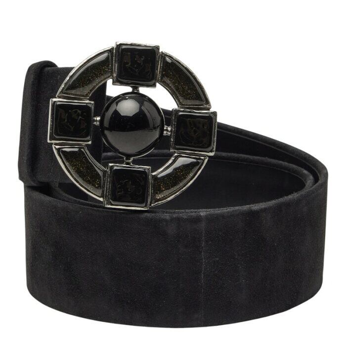 シャネル ベルト サイズ 80 32 ブラック スウェード カラーストーン レディース CHANEL 【中古】