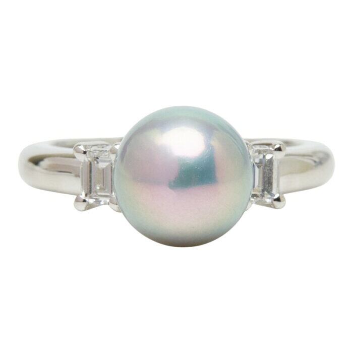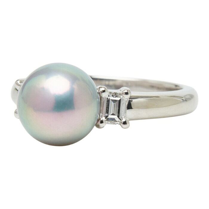 タサキ 真珠 Pt900 プラチナ アコヤパール8mm ダイヤ0.22ct リング 指輪 レディース TASAKI 6号 【中古】