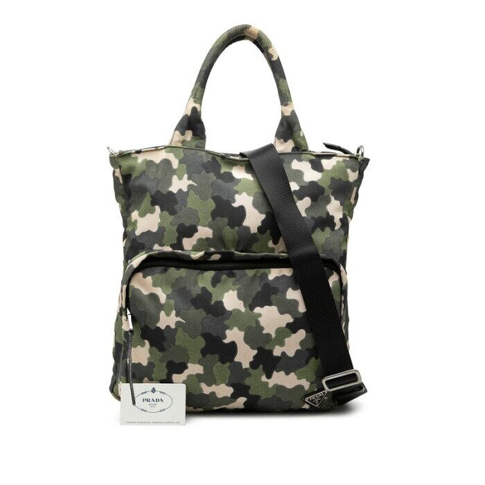 プラダ カモフラージュ柄 三角ロゴプレート トートバッグ ショルダーバッグ 2WAY VA0878 グリーン キャンバス メンズ PRADA 【中古】