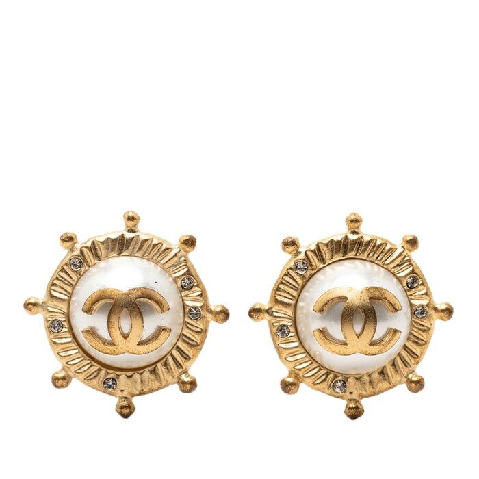 シャネル ココマーク ラインストーン イヤリング ゴールド メッキ フェイクパール レディース CHANEL 【中古】