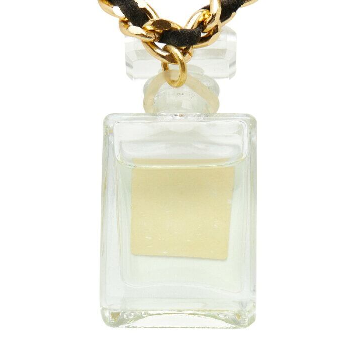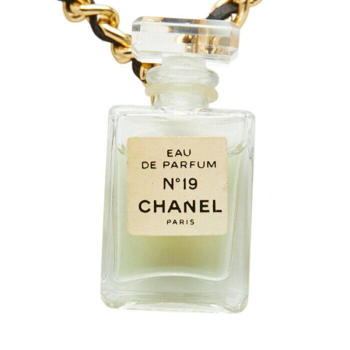 シャネル No.19 香水 パフューム ボトル チェーン ペンダントネックレス ゴールド ブラック レザー メッキ ガラス レディース CHANEL 【中古】