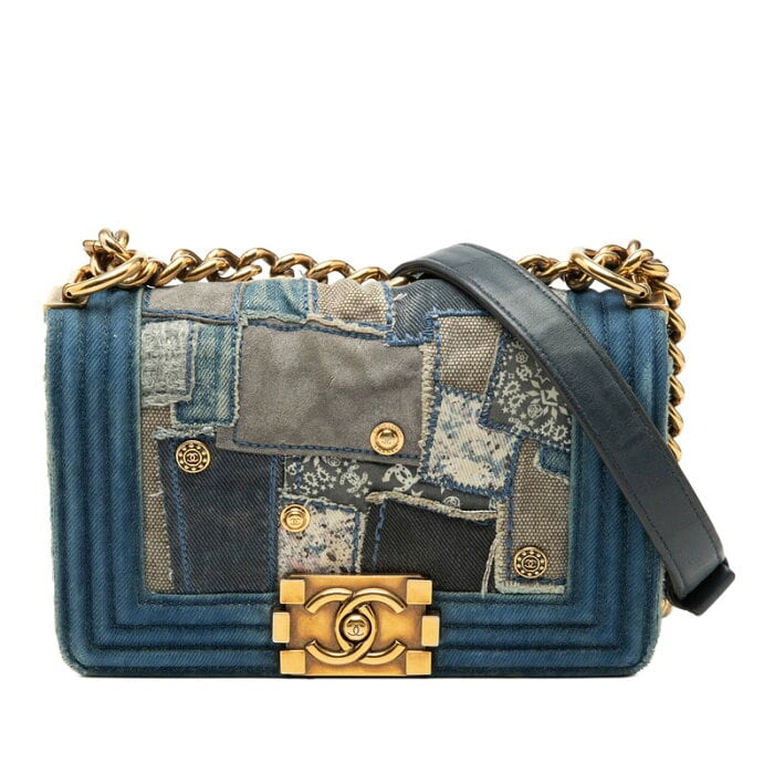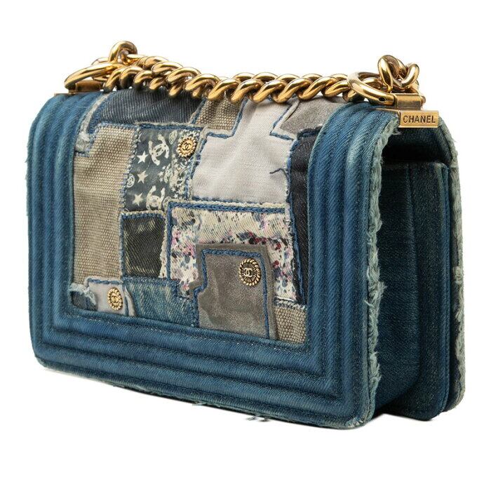 シャネル ココマーク ボーイシャネル20 チェーン ショルダーバッグ パッチワーク ブルー マルチカラー デニム レディース CHANEL 【中古】