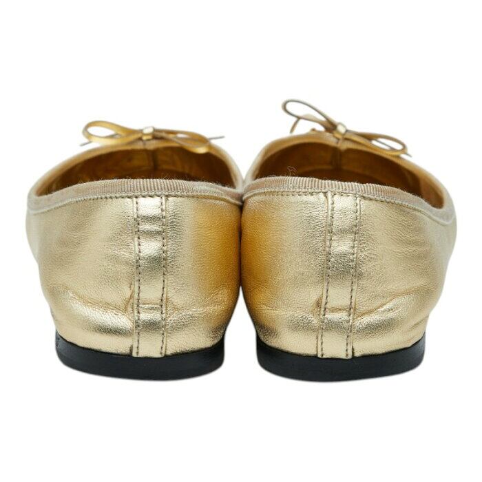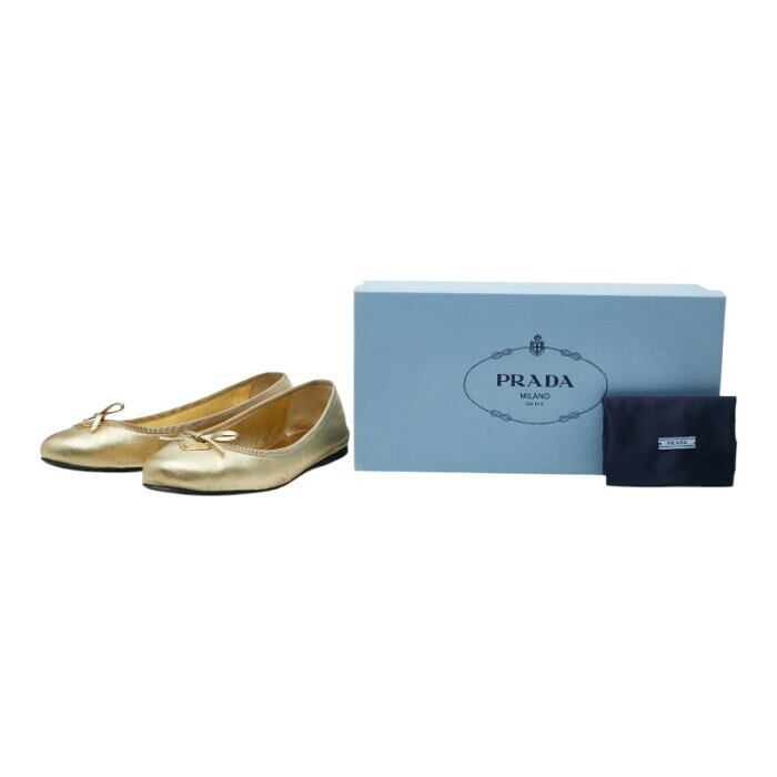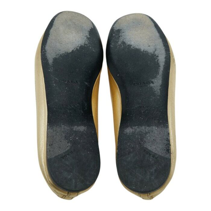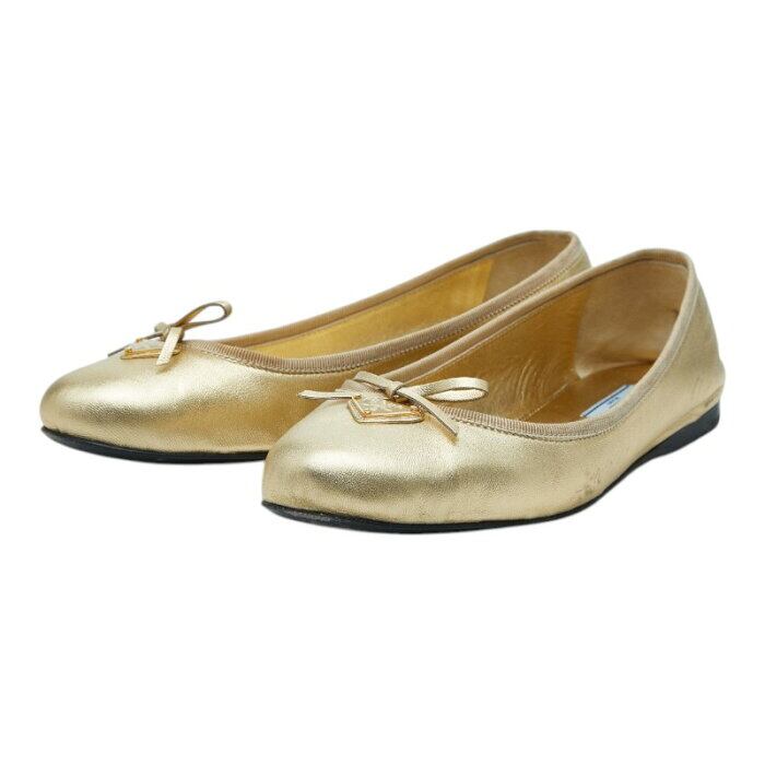 プラダ 三角ロゴプレート バレエシューズ サイズ38 ゴールド レザー レディース PRADA 【中古】