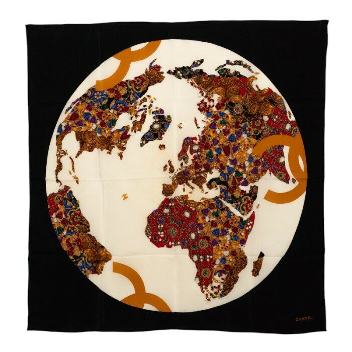 シャネル ココマーク ジュエリー 宝石柄 スカーフ ブラック マルチカラー シルク レディース CHANEL 【中古】